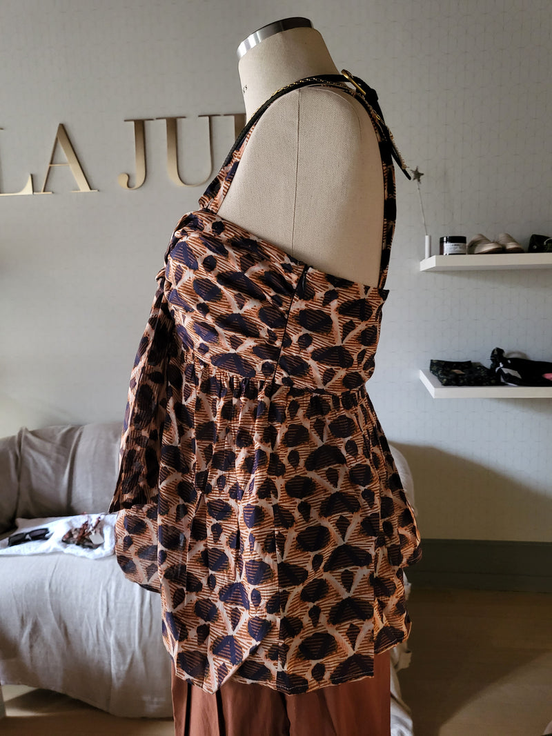 This cotton top with straps is ideal for a fashionable look. Thanks to its soft and light material, it confers comfort and a sensation of freedom. The vintage fantasy adds a touch of uniqueness and elegance.