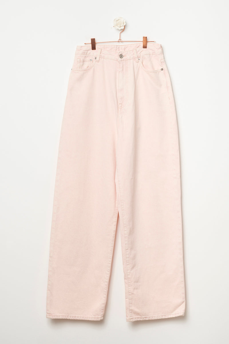 Con un taglio ampio e un lavaggio rosa chiaro, questi jeans gamba ampia aggiungono un tocco di stile baggy al tuo guardaroba. Confortevoli e di qualità premium, questi jeans sono l'ideale per un look casual .Consigliamo di acquistare una taglia più piccola rispetto alla abituale.