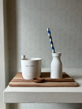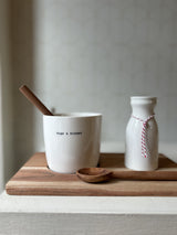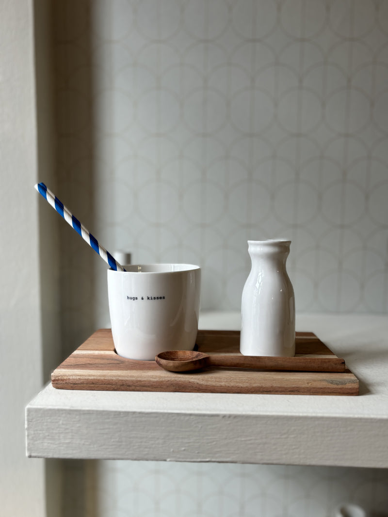 Wonderful handmade cup in fine white porcelain with the inscription 'Hugs and Kisses'.