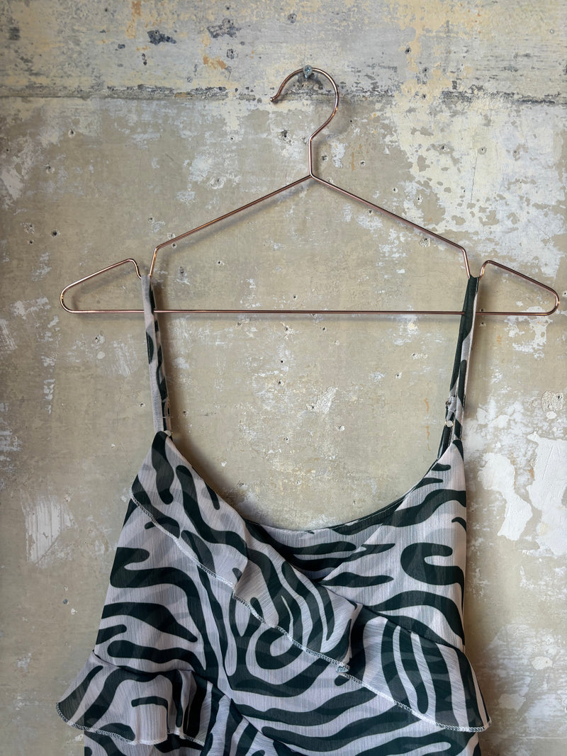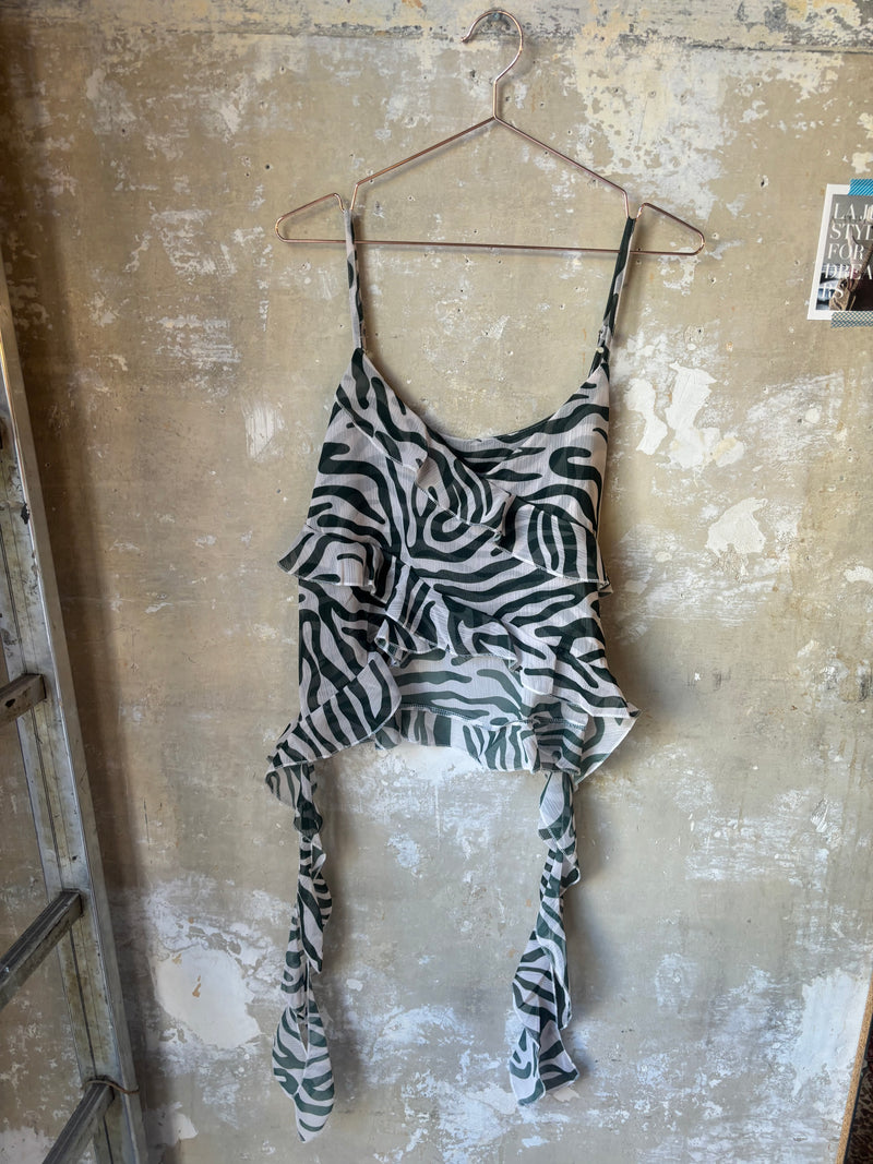 Top zebrato with thin straps and ruffles that can be talked about in life