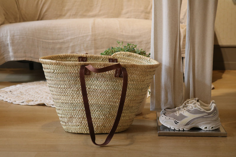 Borsa in palma con manici in pelle e fondo ovale. Perfetta per il mare o la città, ampia e resistente nonostante la trama fine. Da portare a mano o a tracolla. Elegante e funzionale, un must-have per chi ama la qualità e l'esclusività.